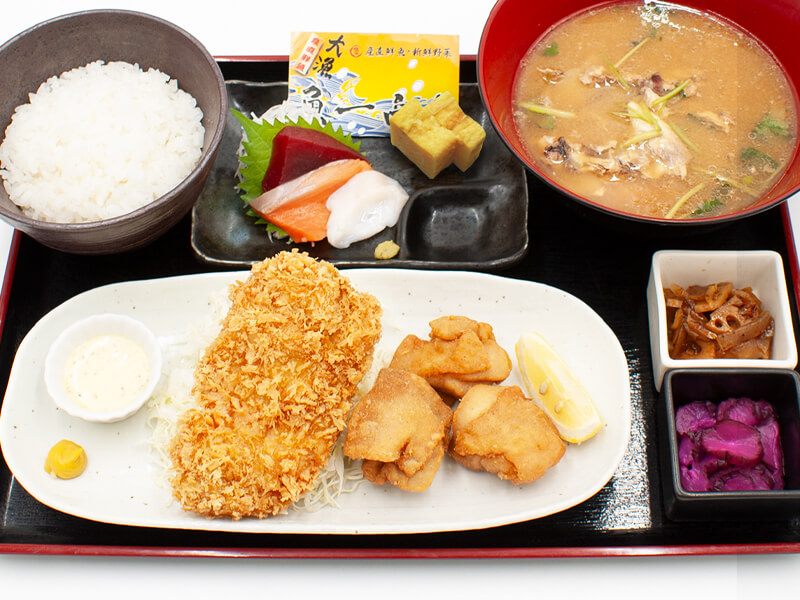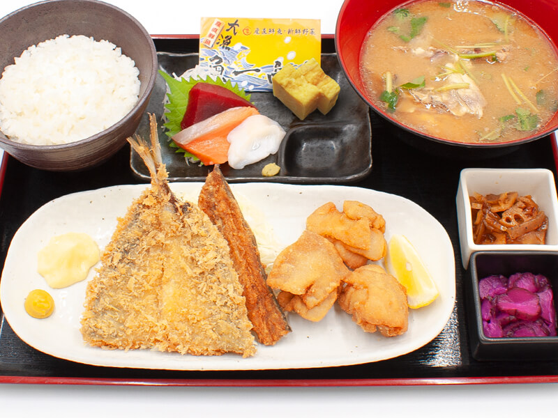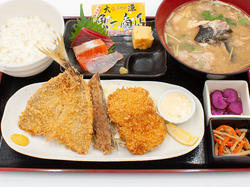 人気!生から揚げるアジフライ(沼津漁港 仲買人直送)と、備長炭炭火焼きの焼き魚